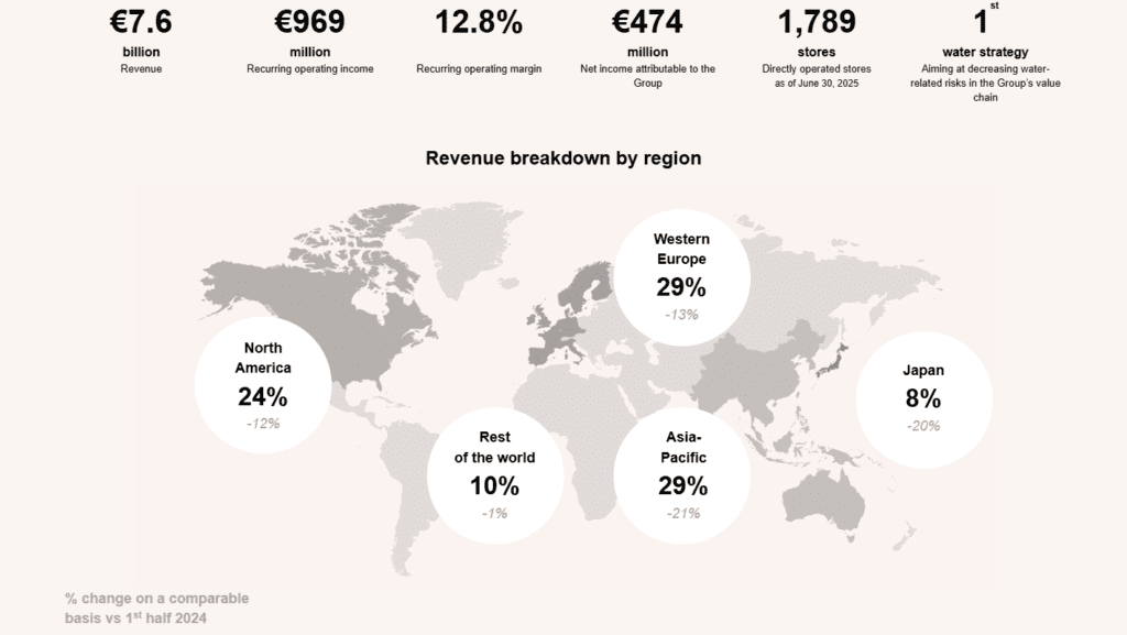📊 Kering (PPRUY) 2025 első félév főbb pénzügyi adatok