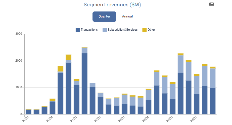 Coinbase (COIN) szegmens bevételek, iO Charts