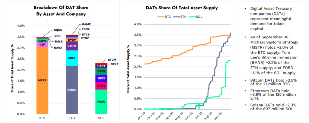 Digital Asset Treasury (DAT) felhalmozott eszközök, ARK Invest 2025 Q3 report