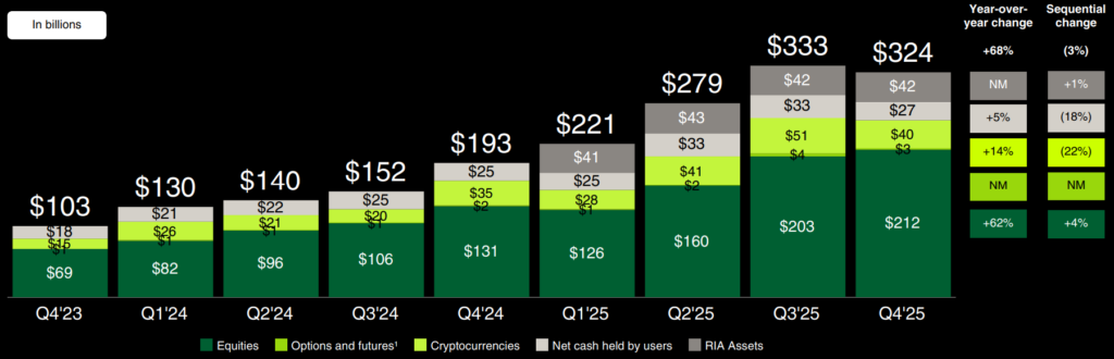 Robinhood (HOOD) 2025 Q4 report, ügyfélbetétek teljes értéke