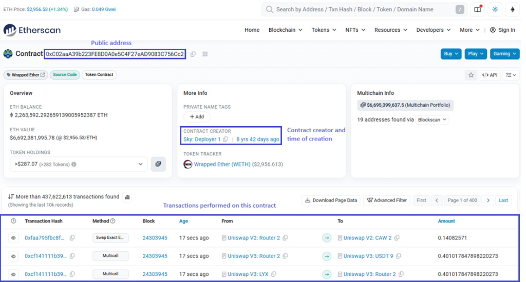 📌Gyakorlatban: Továbbá, ha okosszerződésen végzünk tranzakciót, akkor érdemes leellenőrizni magát az okosszerződést is. Erre az úgynevezett blockchain explorerek tökéletesen megfelelnek, például Ethereum hálózaton a legtöbbet használt az Etherscan (Etherscan). Ha ide beillesztitek a szerződés címét (ami egy 0x-szel kezdődő nagyon hosszú hexadecimális szám), akkor láthatjátok, hogy milyen tranzakciók lettek a szerződésen elvégezve, mikor hozták létre, stb. A csaló szerződéseket ezeken az oldalakon nagyon hamar meg szokták jelölni, hogy minél kevesebb ember essen áldozatul.